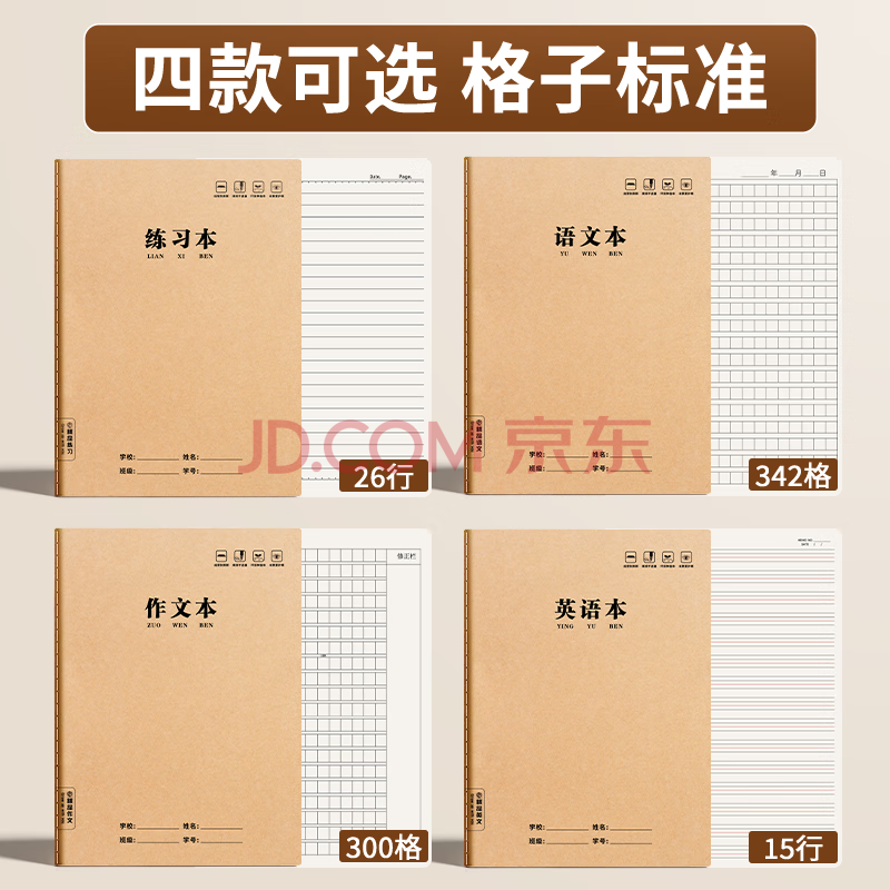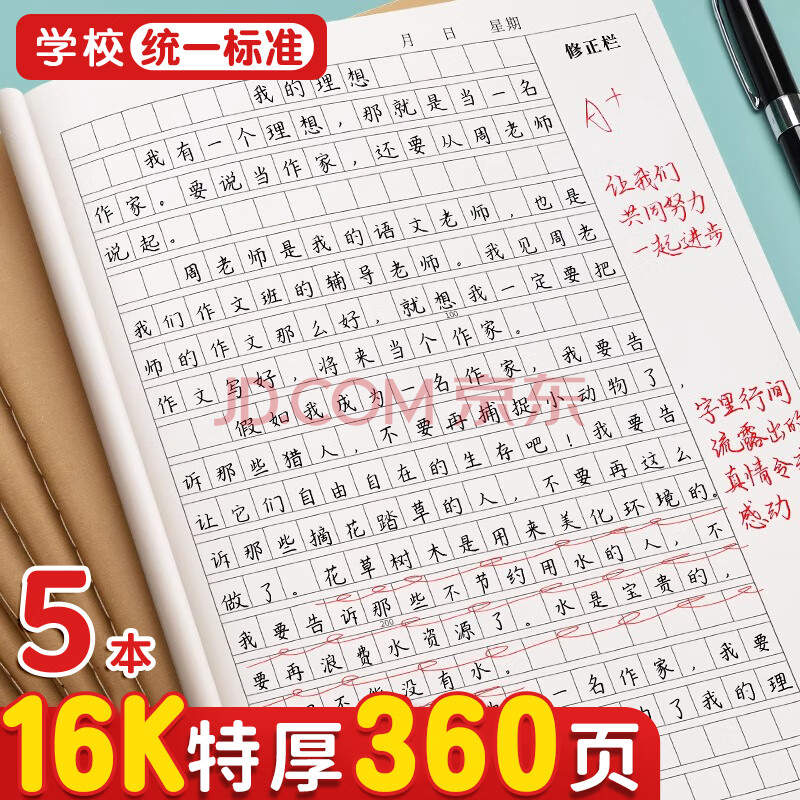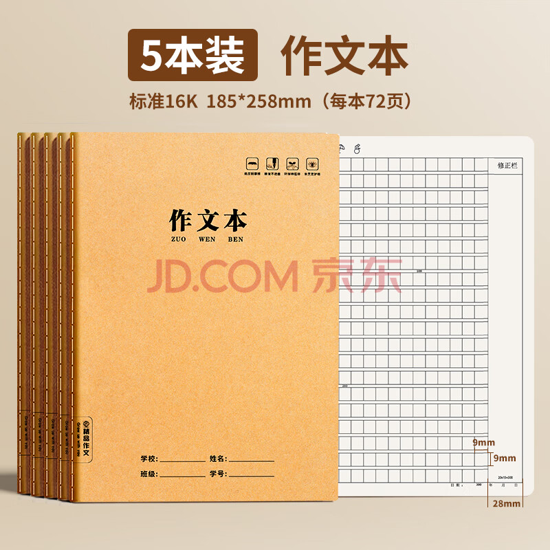商品相册:舒星16k作文本方格本300格72页小学生作业本抄写本开学季b5初中生用笔记本本子牛皮纸开学必备 5本装第