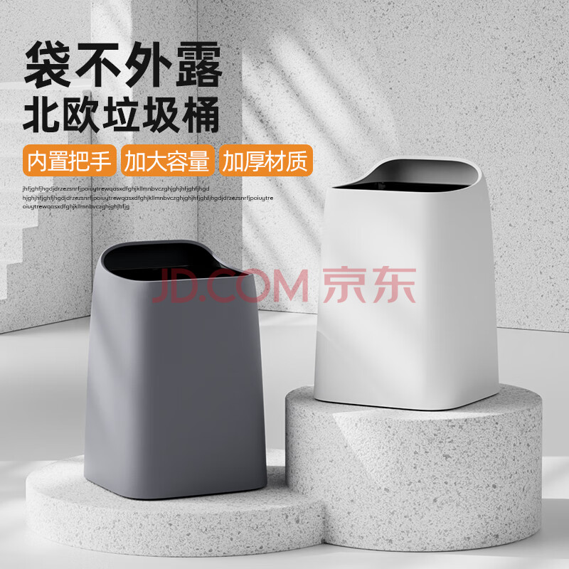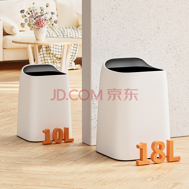 商品相册:朴厨无盖垃圾桶18L灰色家用双层大号客厅卧室厨房卫生间大容量纸篓第