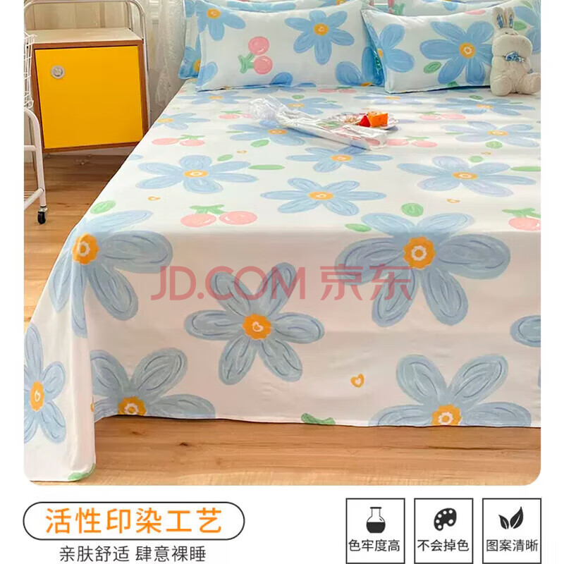 商品相册:艾薇 床单单件 被单单件单人宿舍床垫磨毛床单 蓝色花开 180*230cm第