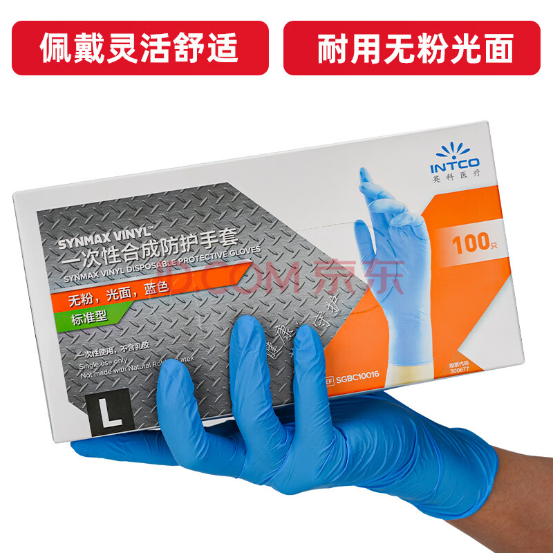 商品相册:英科医疗(INTCO)一次性手套蓝色合成防护手套日常清洁厨房洗碗酒店家务手套100只/盒 M码第