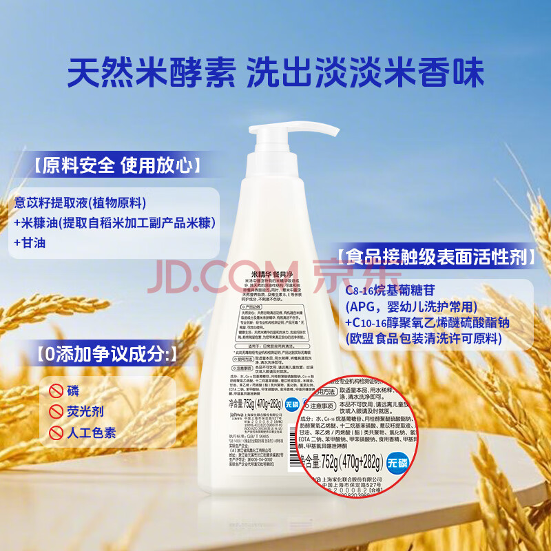 商品相册:家安(HomeAegis)米精华餐具净洗洁精752g*3瓶(食品用 无磷 温和去污不伤手)第