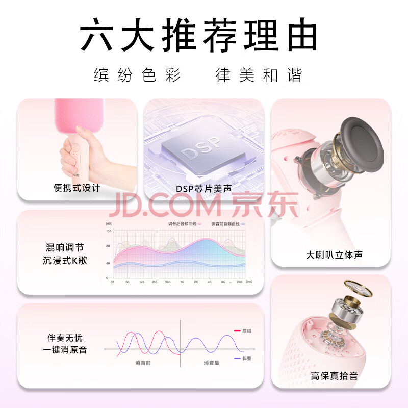 商品相册:索爱(soaiy)MC27手机麦克风话筒音响一体无线蓝牙唱歌儿童家庭KTV主播声卡麦音箱K歌神器 少女粉第