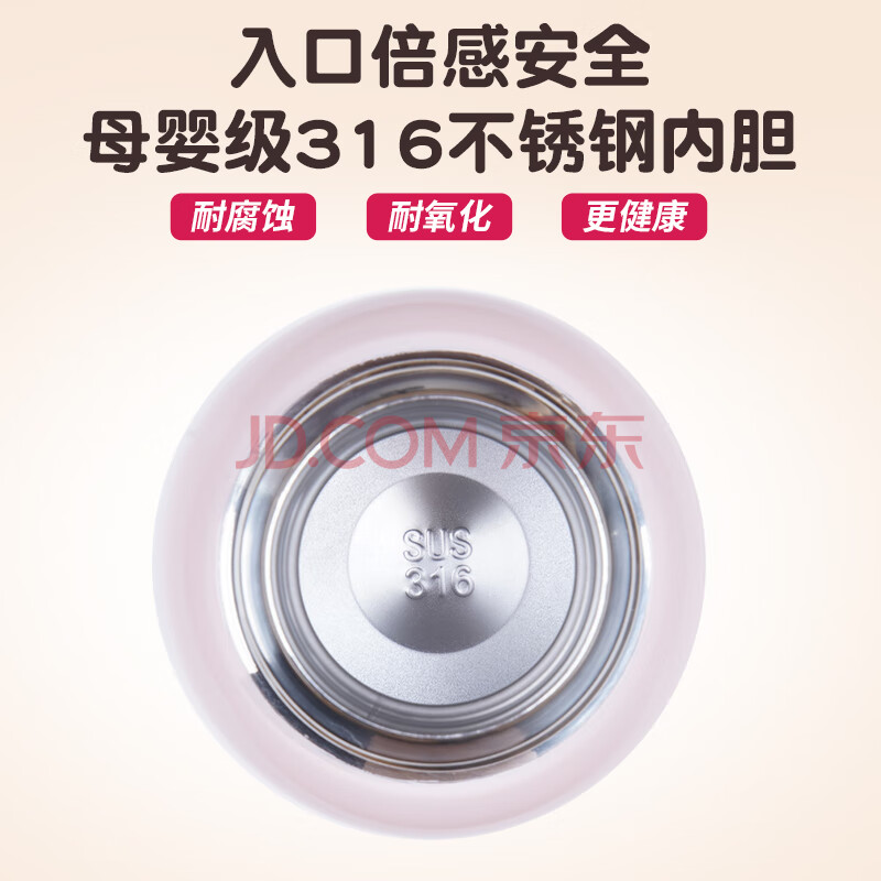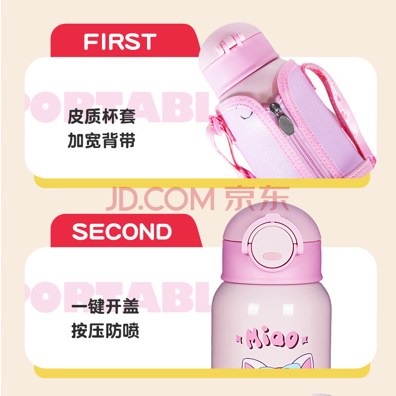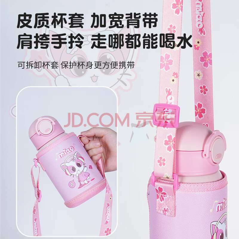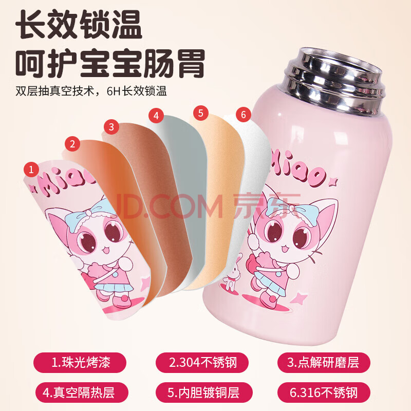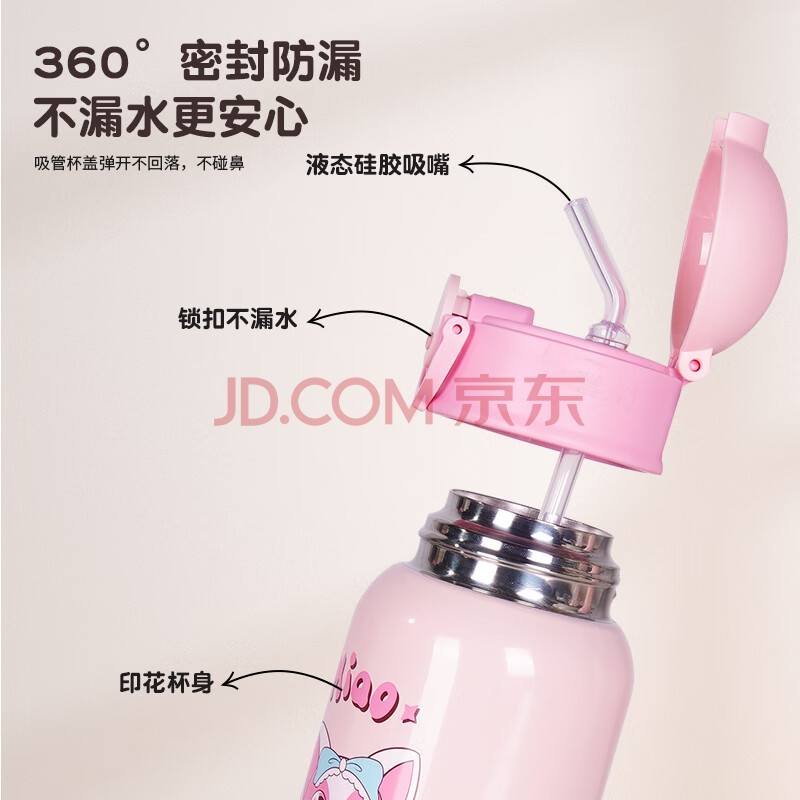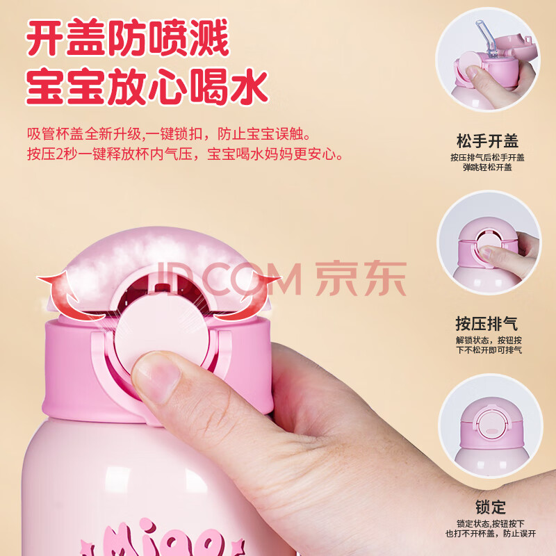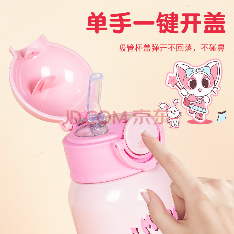 商品相册:Angelamiao儿童保温杯带吸管儿童水杯316不锈钢男女学生保温壶粉色咪凹500ML第