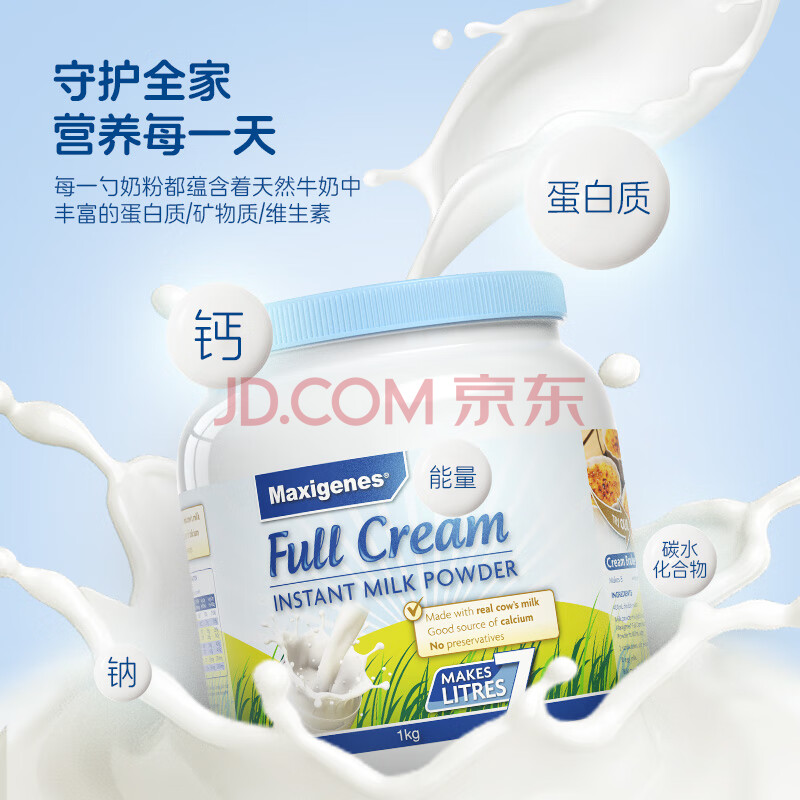 商品相册:Maxigenes美可卓正品蓝胖子全脂牛奶粉营养高钙学生成人中老年新年送礼1kg第
