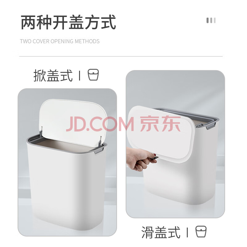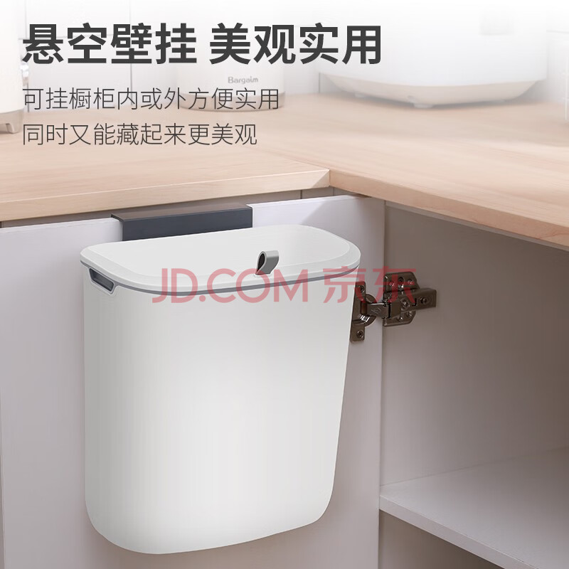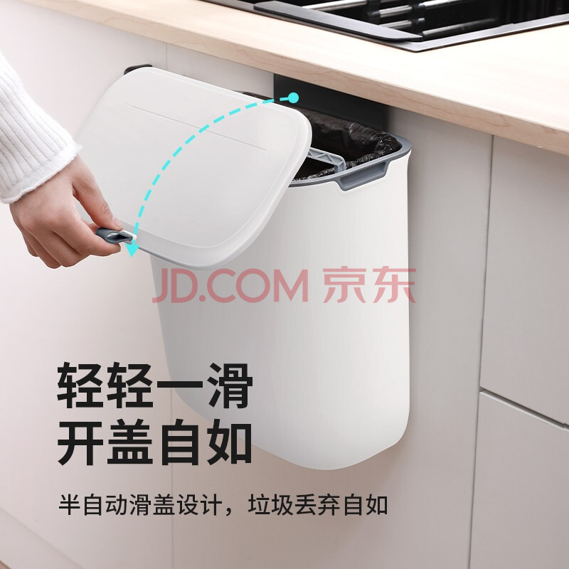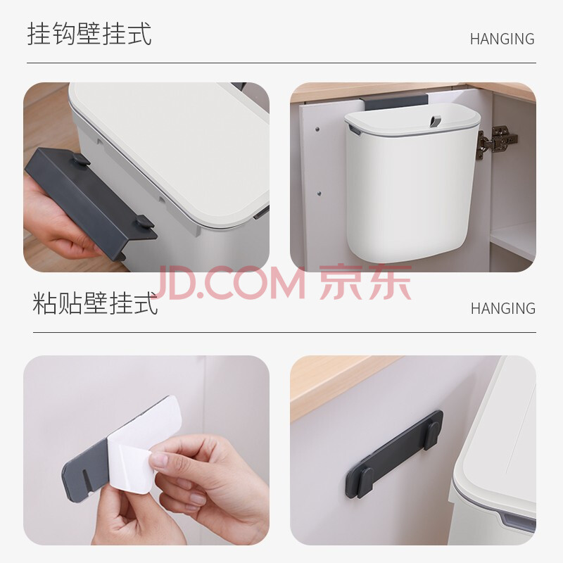 商品相册:京东京造 壁挂式垃圾桶带盖大号壁挂悬挂不弯腰家用分类加厚厨房卫生间第