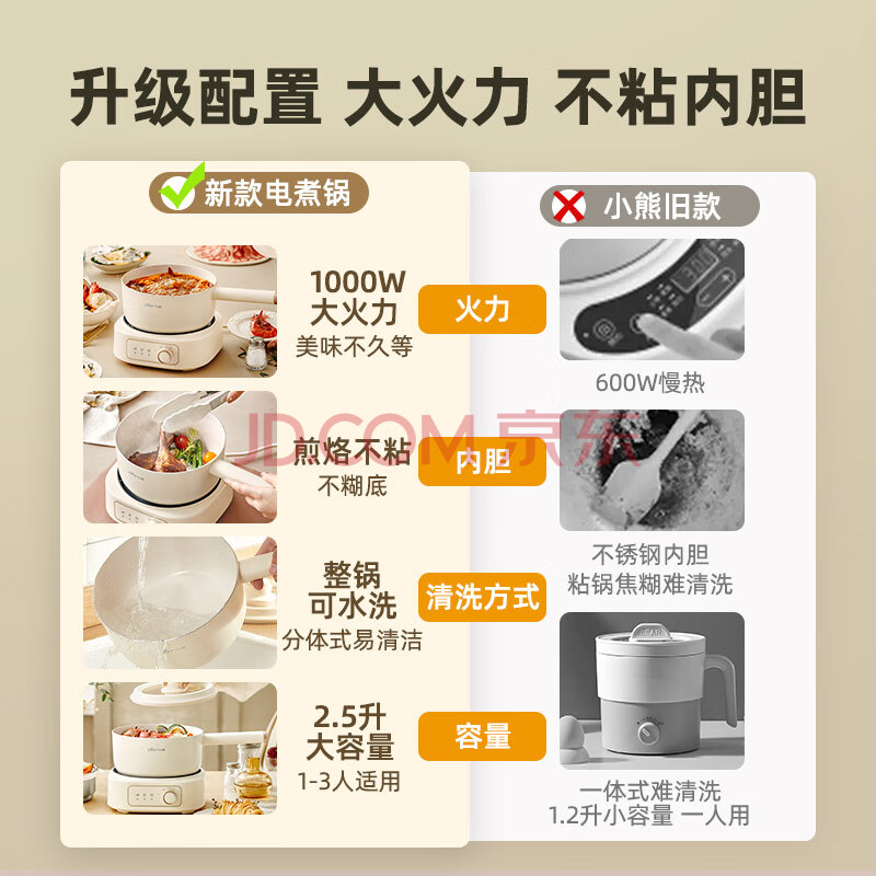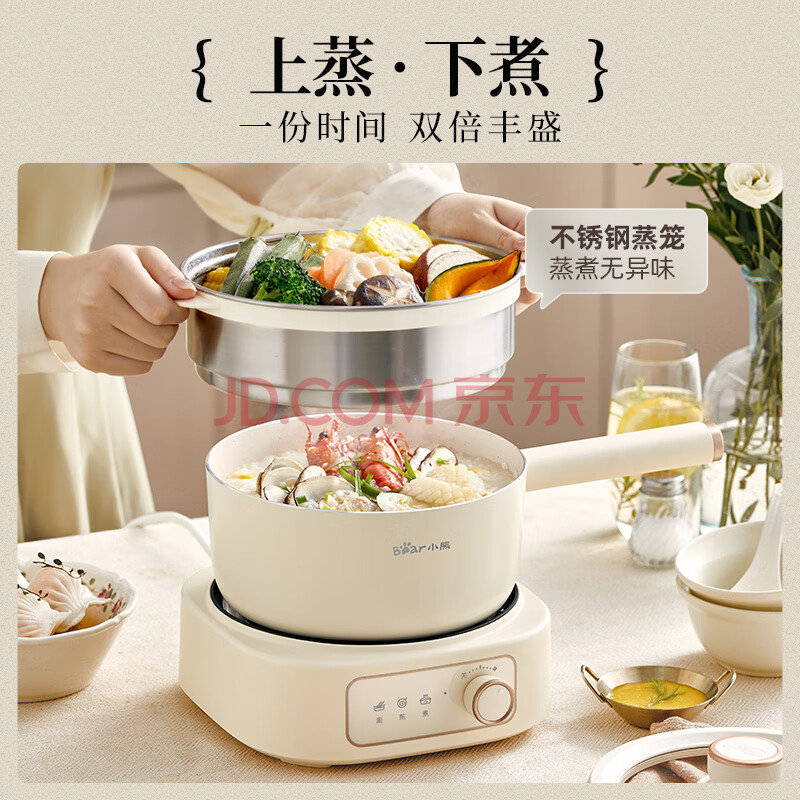 商品相册:小熊(Bear)电煮锅 分体式电热锅 小电锅 电火锅 电蒸锅 学生宿舍多功能锅 蒸煮煎炒2-3人用 配蒸笼2.5L D25D1第