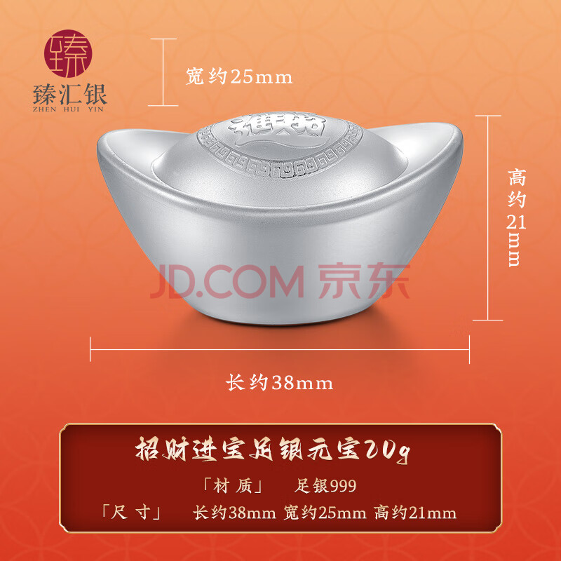 商品相册:臻汇银999足银空心元宝摆件银锭收藏长辈送礼招财进宝元宝50g第