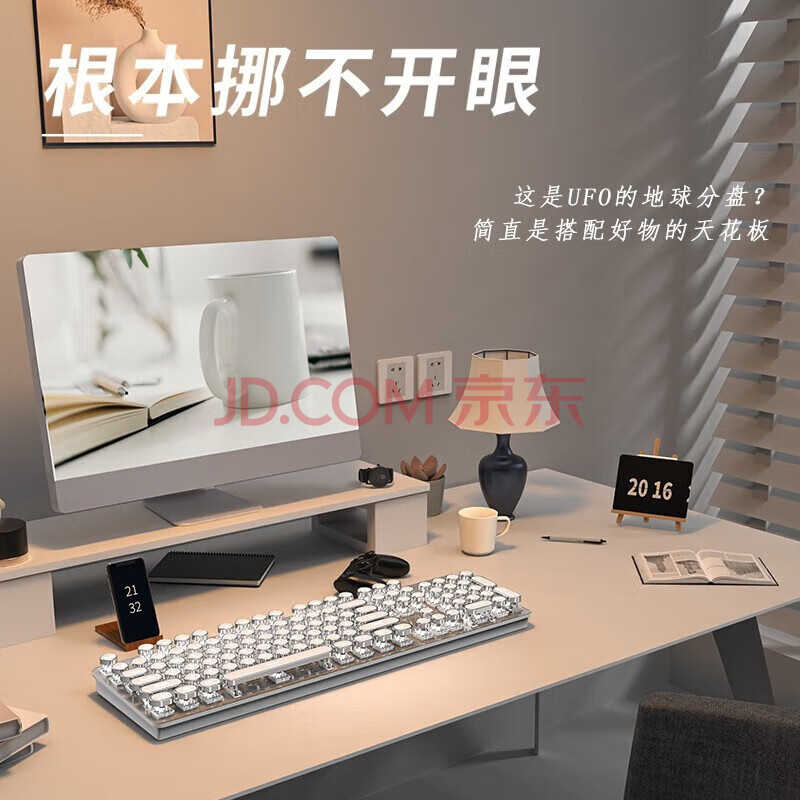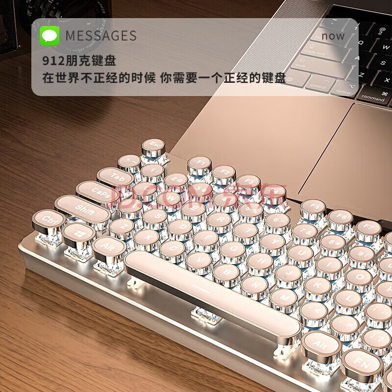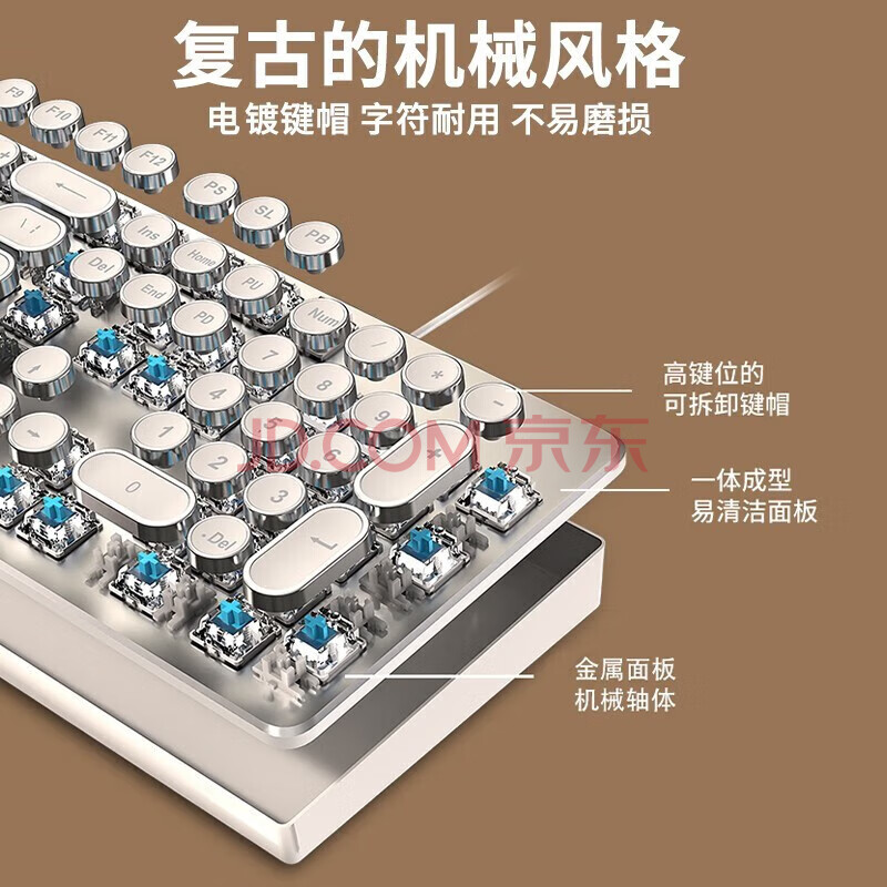 商品相册:前行者(EWEADN)TK950无线蓝牙朋克机械键盘鼠标套装有线三模办公游戏电脑笔记本黑轴复古外设104键 白色白光第
