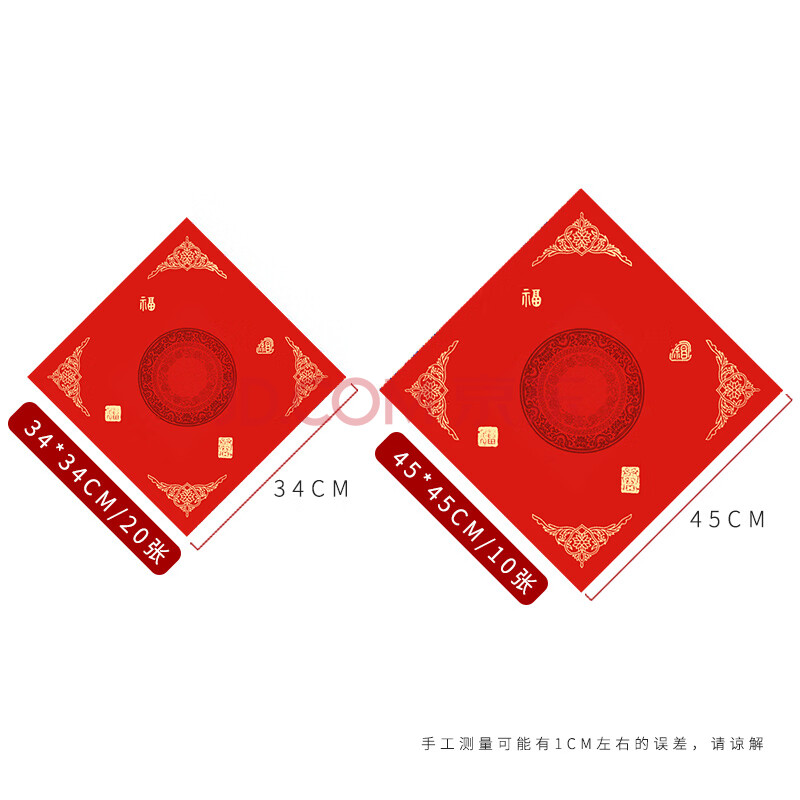 商品相册:一海堂 文化2026新马年春联纸万年红宣纸对子空白福字斗方专用纸毛笔宣纸传统红纸 福瑞祥云-斗方34CM/20张第