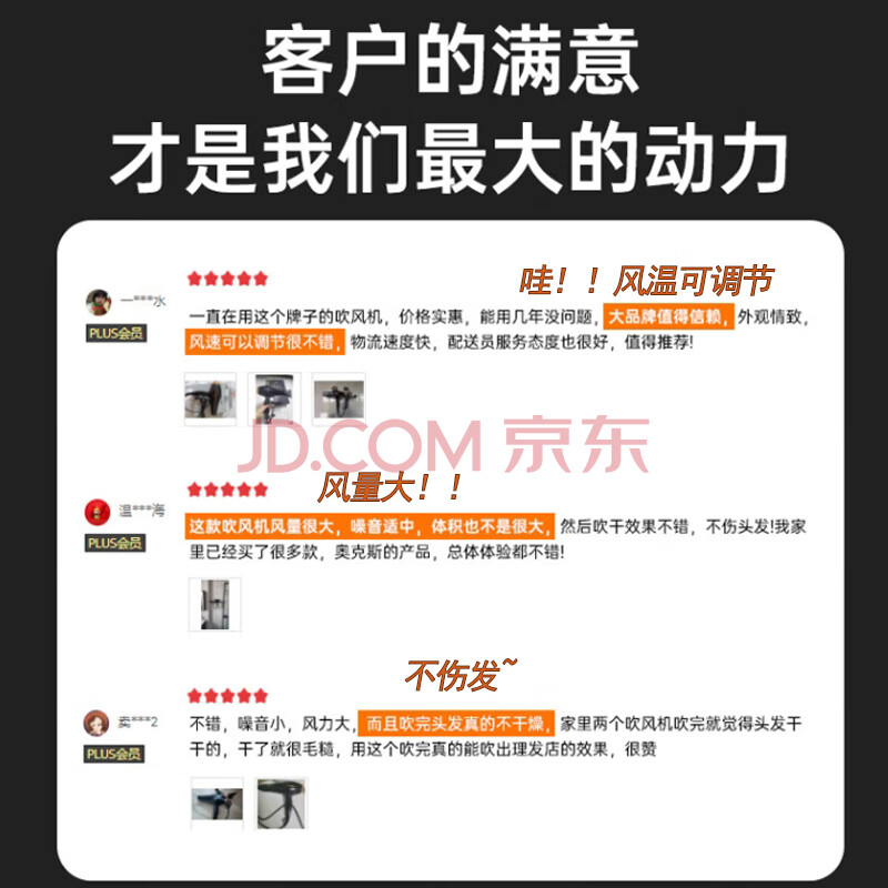 商品相册:奥克斯(AUX) 吹风机家用大功率2000W恒温不伤发吹风筒大风力速干电吹风理发店专用电吹风机黑色风筒AH7610第