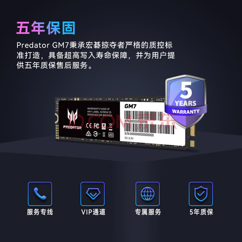 商品相册:宏碁掠夺者(PREDATOR)2TB SSD固态硬盘 M.2接口(NVMe协议) GM7系列|NVMe PCIe 4.0读速7200MB/s AI电脑存储配件第