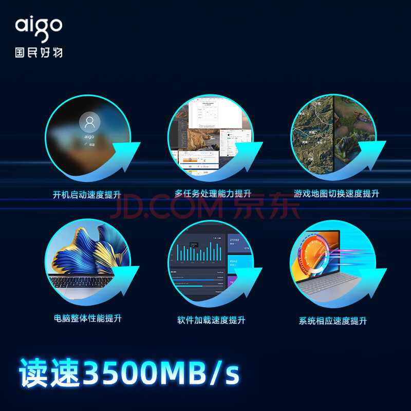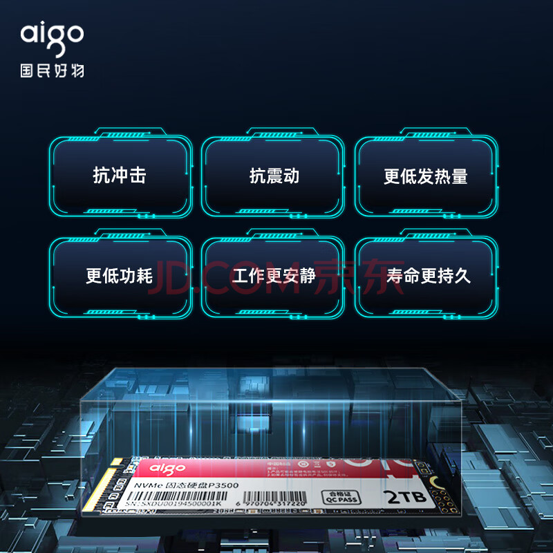 商品相册:爱国者(aigo)512GB SSD固态硬盘 M.2接口NVMe协议 PCIe3.0原厂TLC颗粒 台式机笔记本通用P3500 读速3500MB/s第