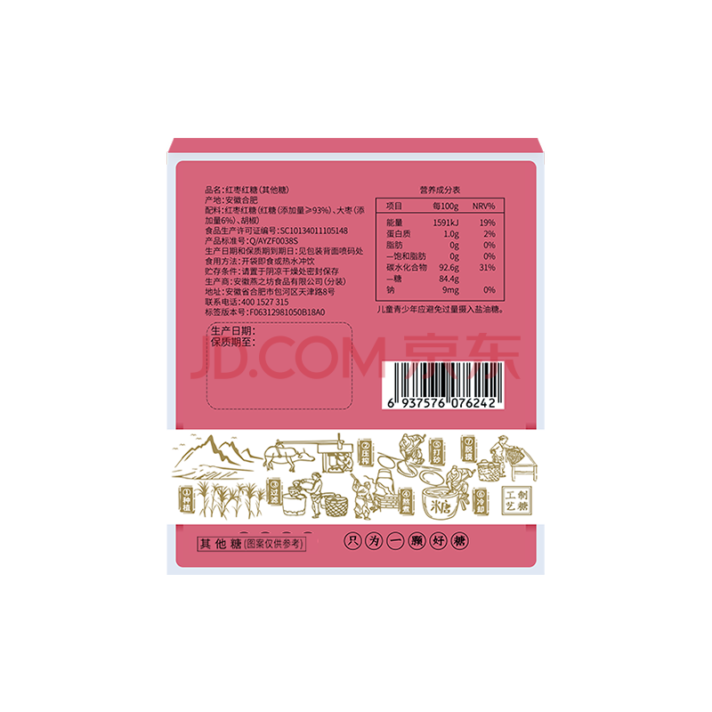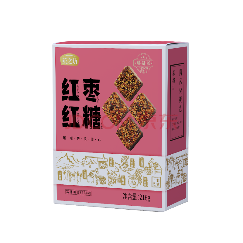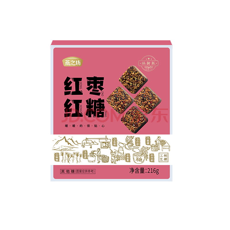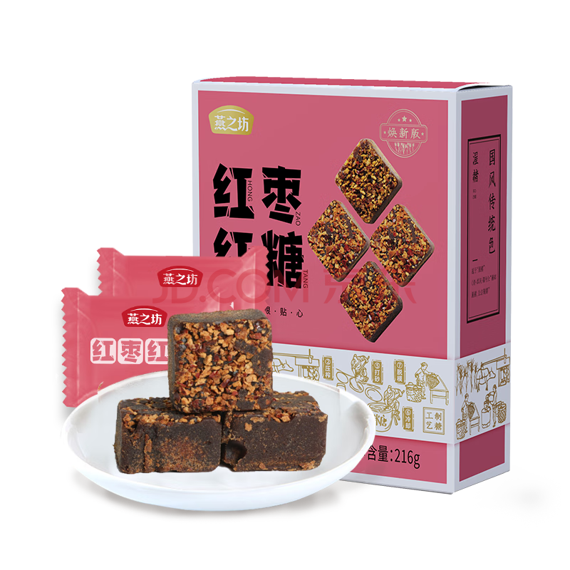 商品相册:燕之坊红枣红糖块216g 古法熬制0脂肪秘糖手工甘蔗红糖第