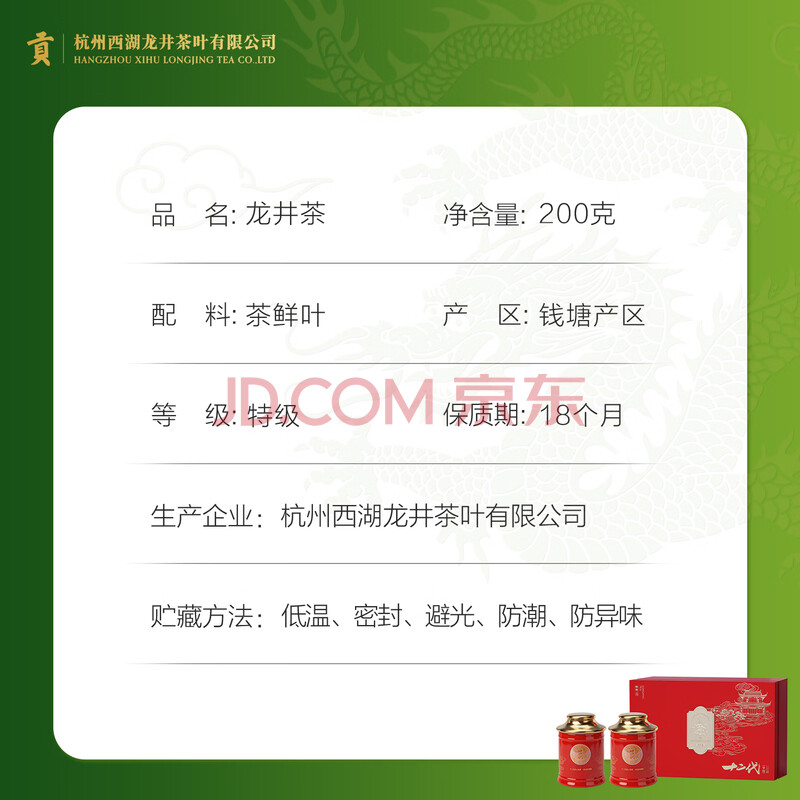 商品相册:贡牌2026新茶上市 绿茶龙井茶特级200g明前礼盒装源头直发第