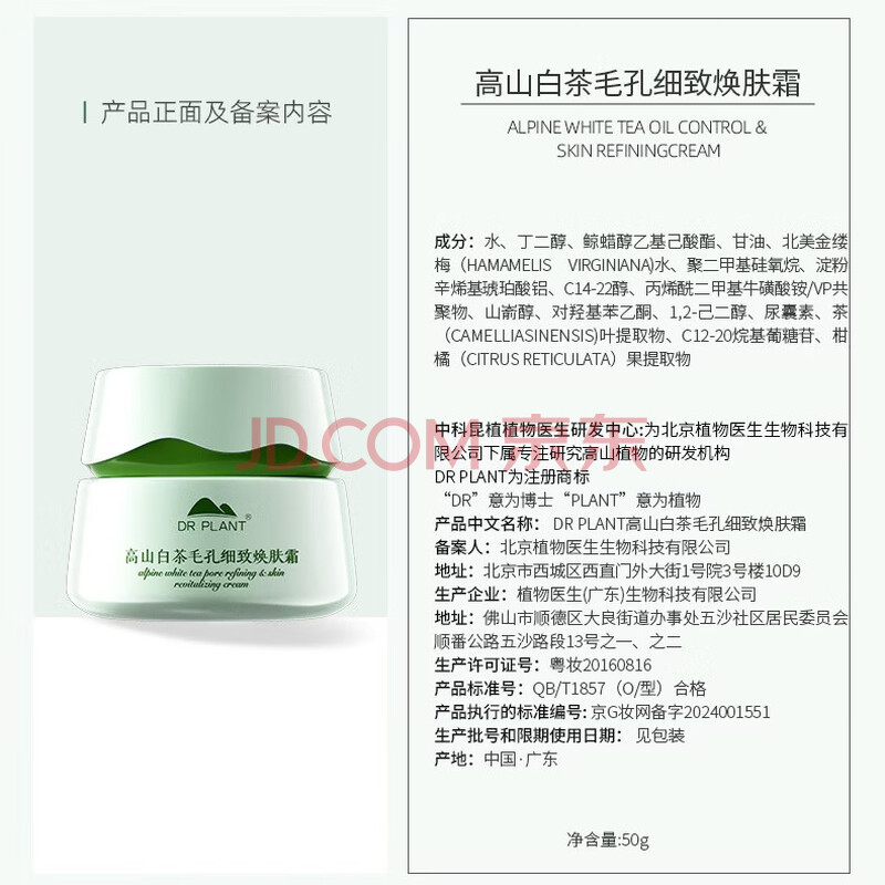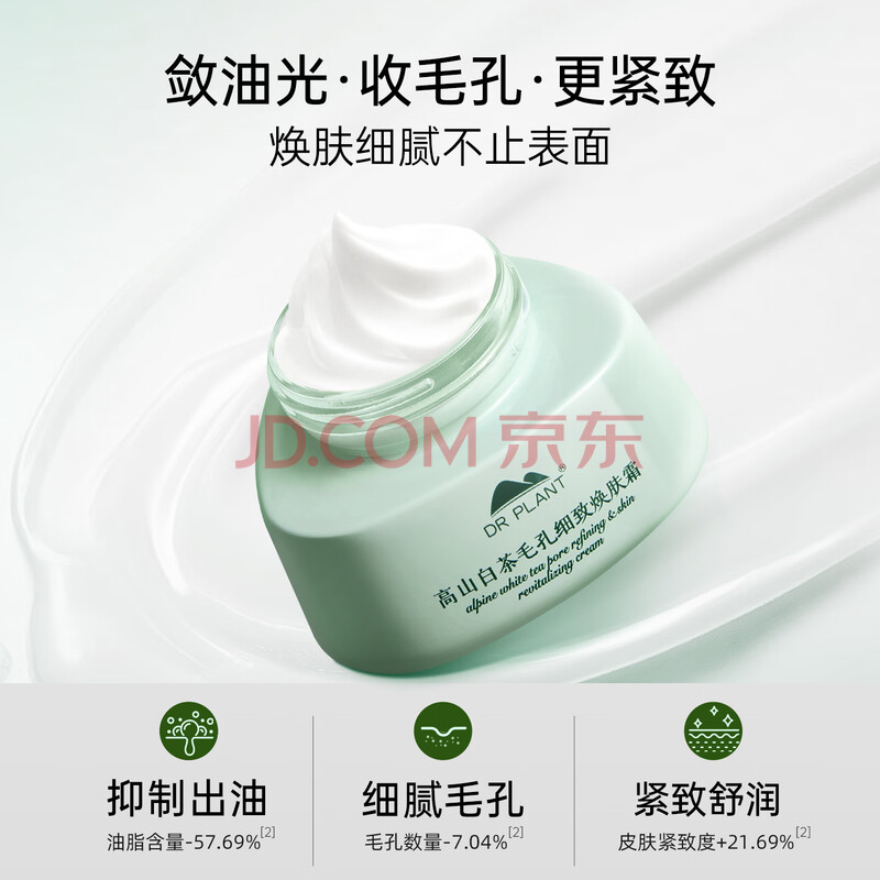 商品相册:植物医生白茶面霜细致毛孔控油补水保湿润肤霜50g第