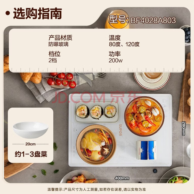 商品相册:苏泊尔(SUPOR)暖菜板饭菜保温板热菜板加热桌垫 烘干发酵解冻双档调温多功能加热板BF4028A803第1张/共8