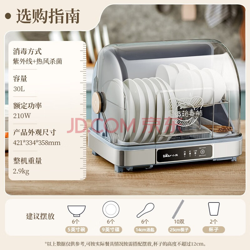 商品相册:小熊(Bear)多功能消毒柜 家用小型桌面台式 厨房碗筷刀架立式消宝宝奶瓶 紫外线保洁柜ZTD30-A21E5第1张/共8