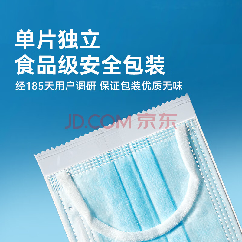 商品相册:京东京造医用外科口罩一次性独立包装灭菌级100只蓝色防晒口罩防尘口罩防第
