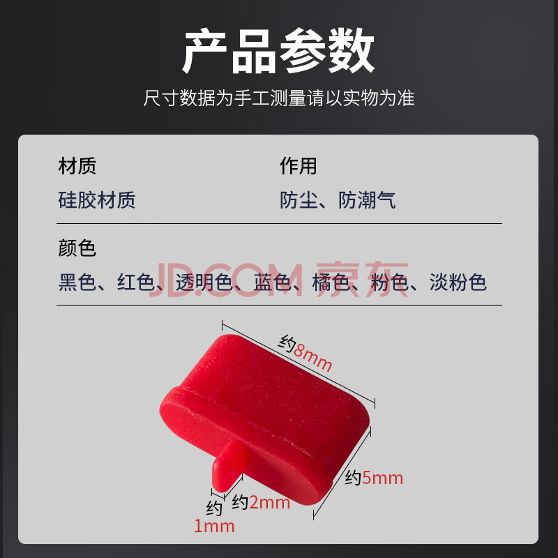 商品相册:索厉Type-c防尘塞/硅胶材质带尾翼可插拔/红色100个装/20016第