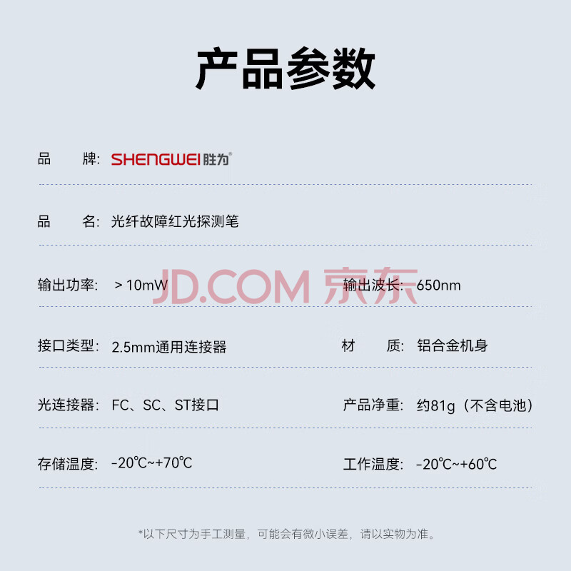 商品相册:胜为红光光纤测试笔 10mW红光源 断点故障测试仪10公里通光笔/打光笔 SC/FC/ST接头冷接子通用 FB-110第