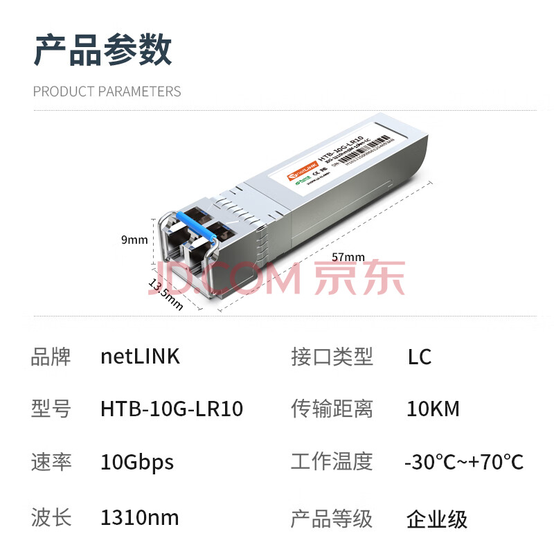 商品相册:netLINK SFP+光模块 万兆单模双纤光纤模块 10G,1310nm,10km 适用国产设备 一只 HTB-10G-LR10第