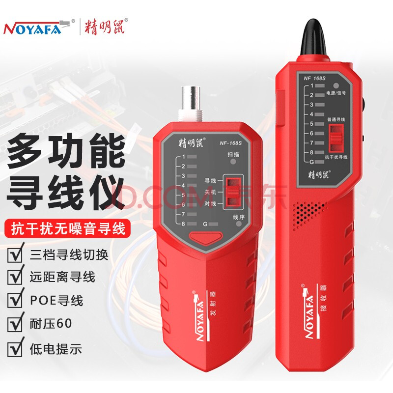 商品相册:精明鼠NF-168S 测线器专业测线仪多功能网线检测仪网络寻线仪测信号通断工具测试仪巡查线电工套装第