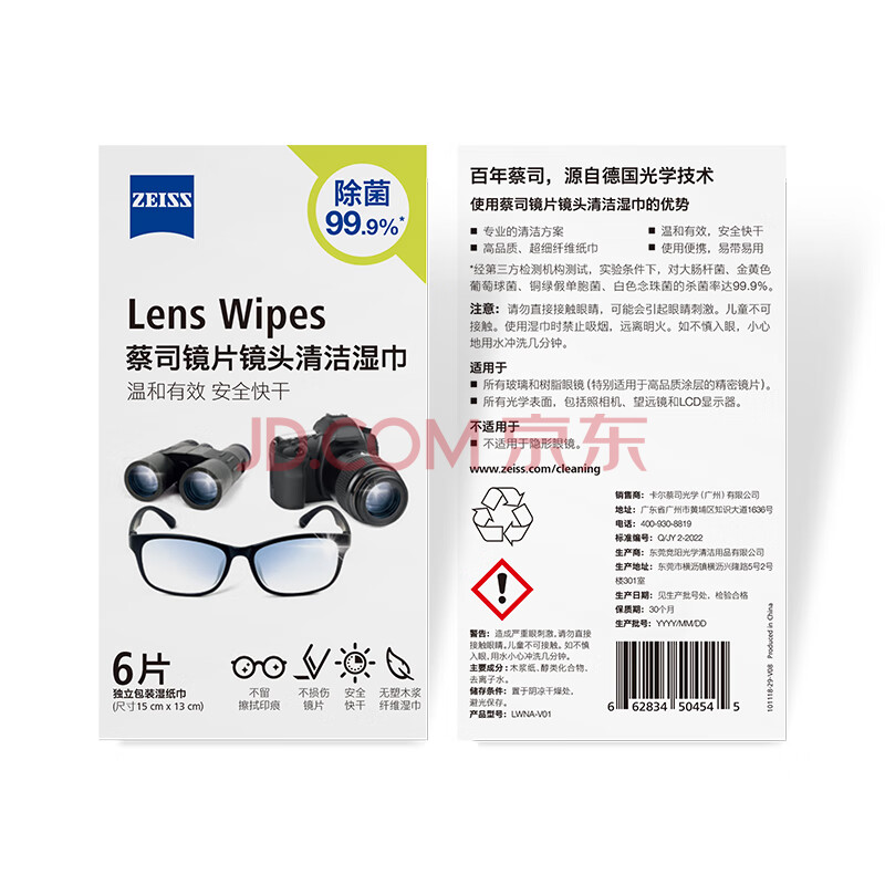 商品相册:蔡司擦镜纸 相机眼镜片镜头擦镜纸清洁湿巾 6片装第1张/共6