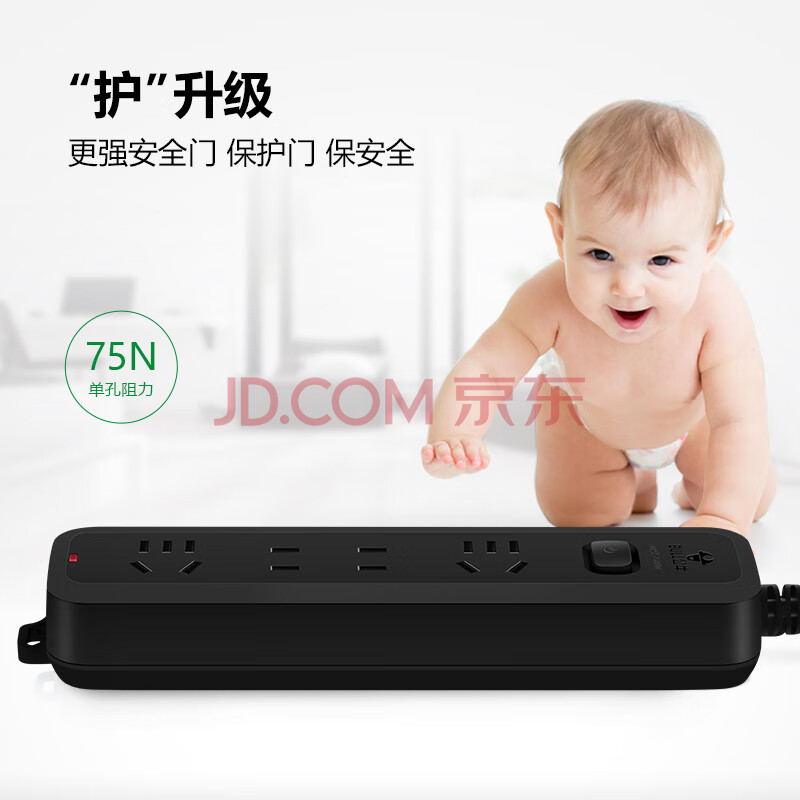 商品相册:公牛(BULL)插座/插线板/插排/排插/接线板/拖线板GN-B8220H 黑色质感4位总控开关全长1.8米第