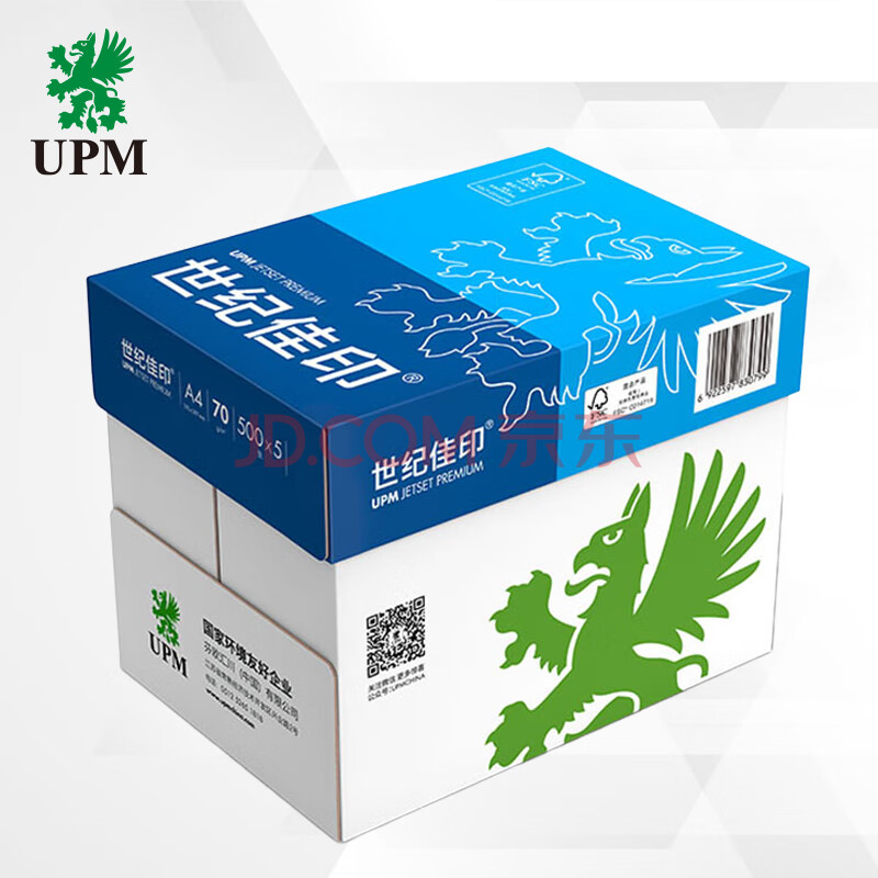 商品相册:UPM世纪佳印 70g A4打印纸 复印纸 高速打印 500张/包 5包/箱(2500张)第