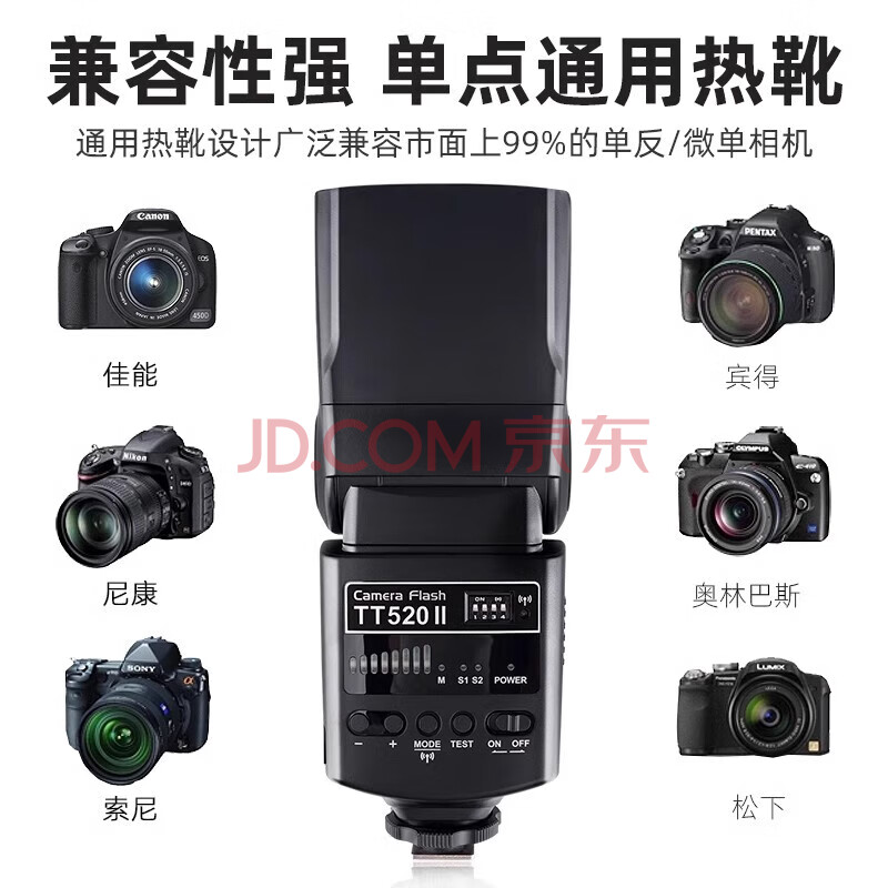 商品相册:神牛(Godox)TT520II 热靴机顶闪光灯 兼容佳能尼康索尼相机外拍闪光离机热靴闪光灯 通用型 (带引闪器)第