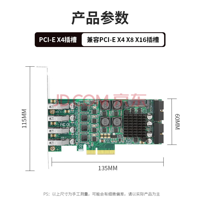 商品相册:魔羯MOGE 八口扩展USB3.0转接卡PCIE转usb3.2 Gen1服务器工业控制高速相机设备 MC2027第