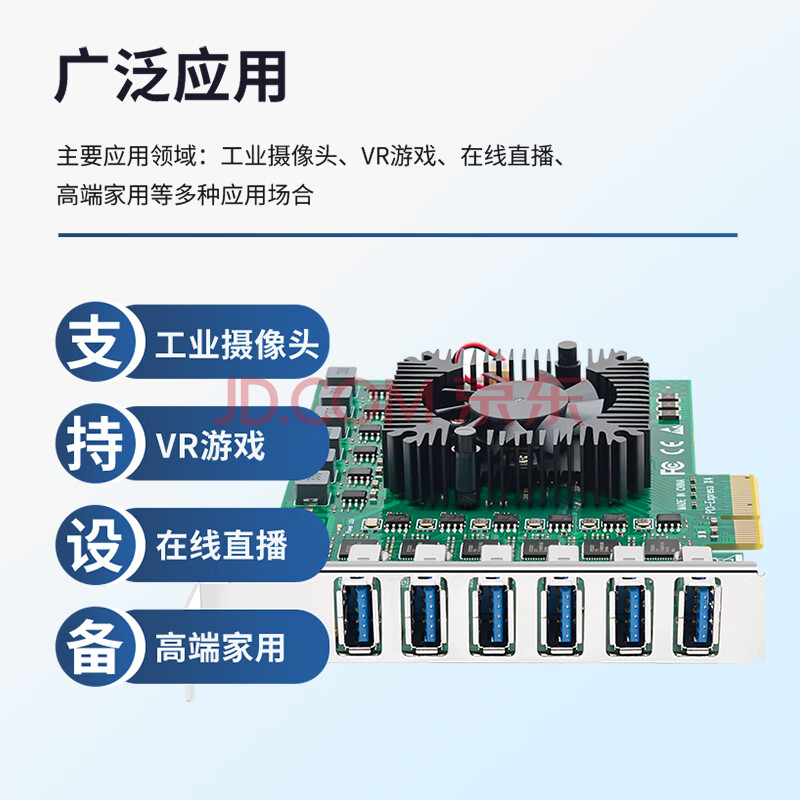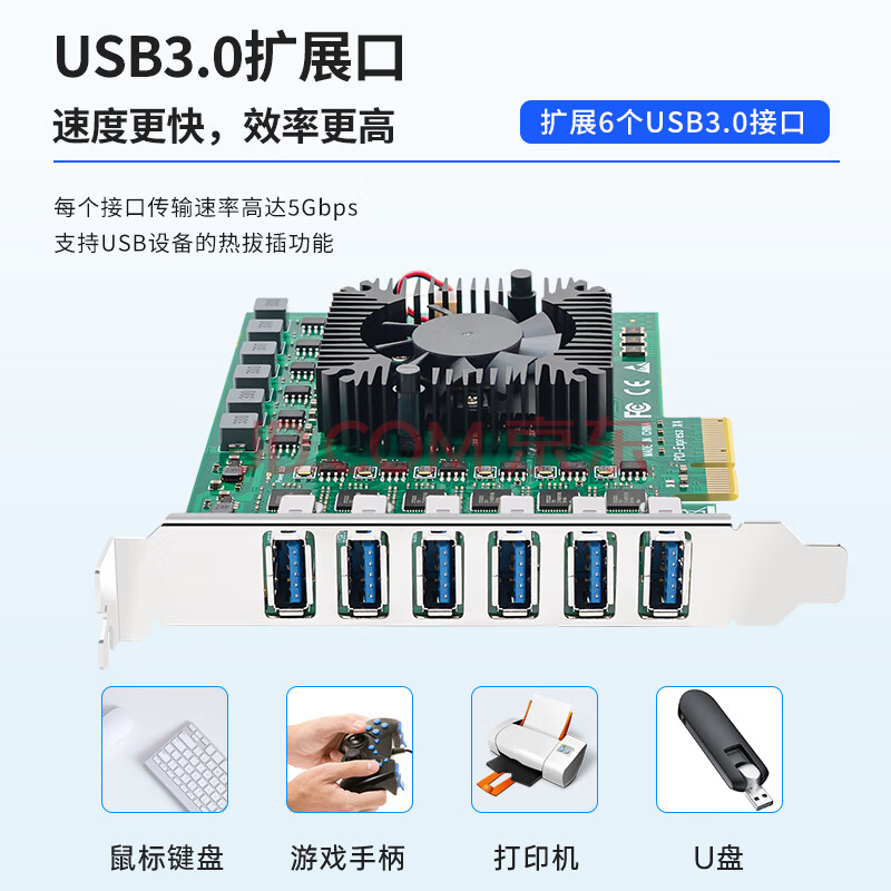 商品相册:EB-LINK PCIE X4转6口USB3.0扩展卡独立六通道电脑后置USB采集转接卡HUB集线卡工业相机光纤通道卡第1张/共5