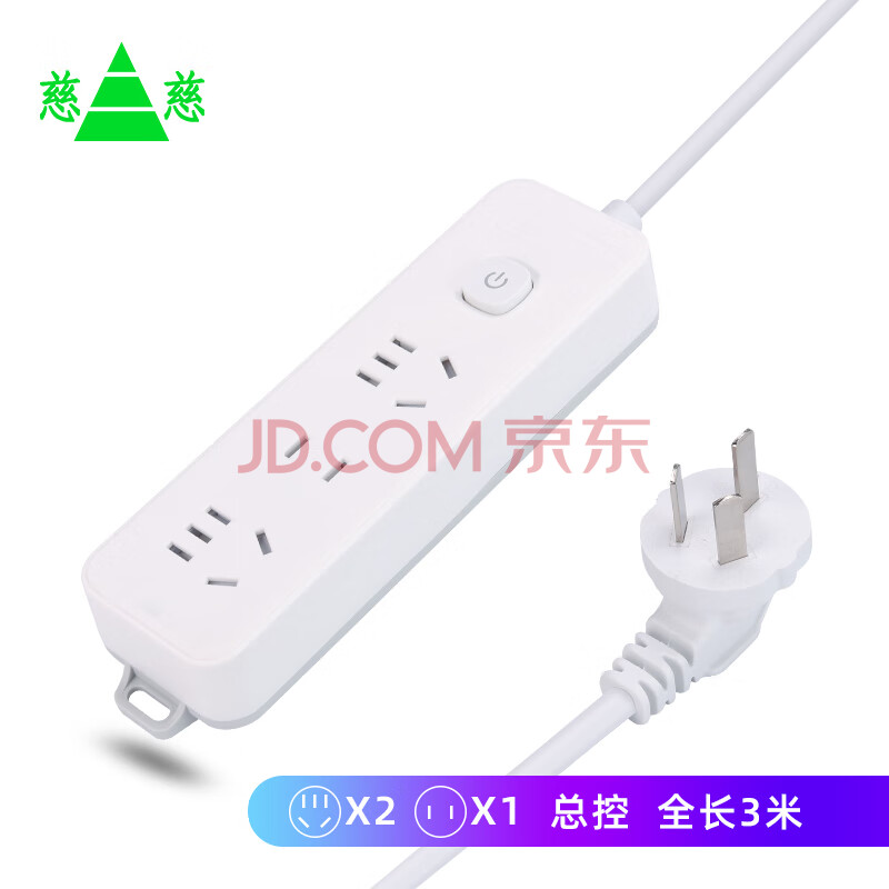 商品相册:慈慈 国标插座/插排/插线板/排插/插板/拖线板/接线板 3位总控 全长3米 A102第