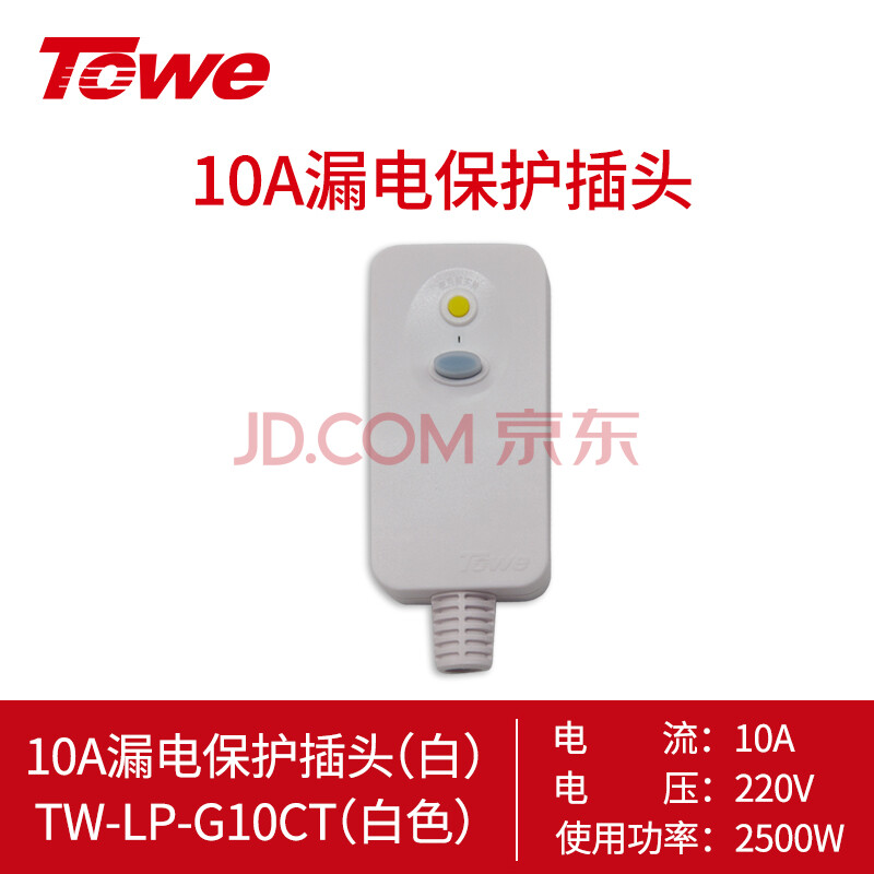 商品相册:TOWE同为漏电保护插头10A白色空调热水器电暖器自行接线可拆卸 TW-LP-G10CT 白色第
