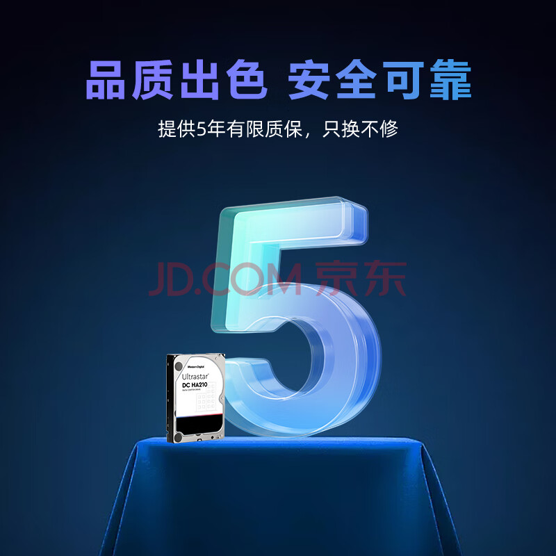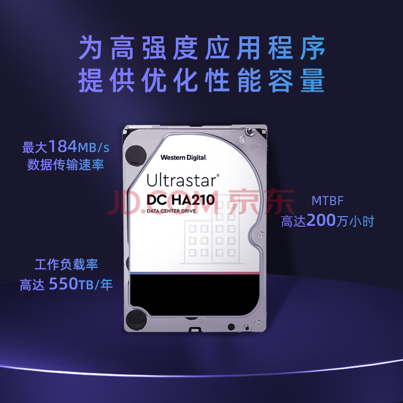 商品相册:西部数据(WD)1TB 企业级机械硬盘DC HA210 SATA 7200转128MB CMR垂直 服务器硬盘 3.5英寸HUS722T1TALA604第