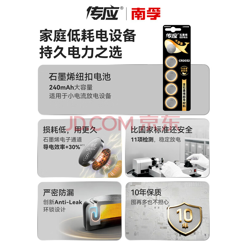 商品相册:传应南孚石墨烯CR2032纽扣电池5粒3V锂电池适用大众奥迪宝马等汽车钥匙遥控器小米盒子耳温枪等cr2032第
