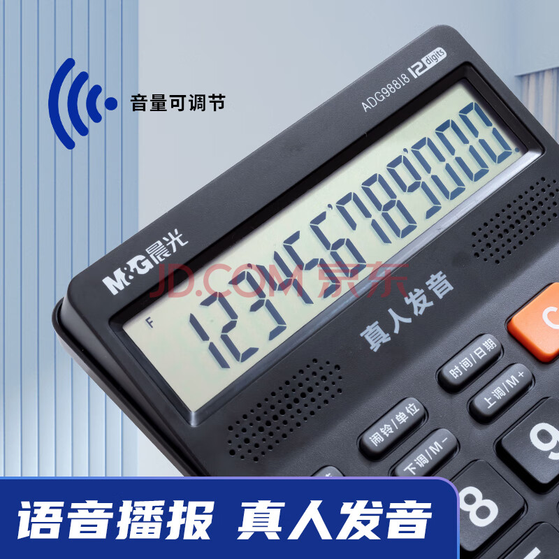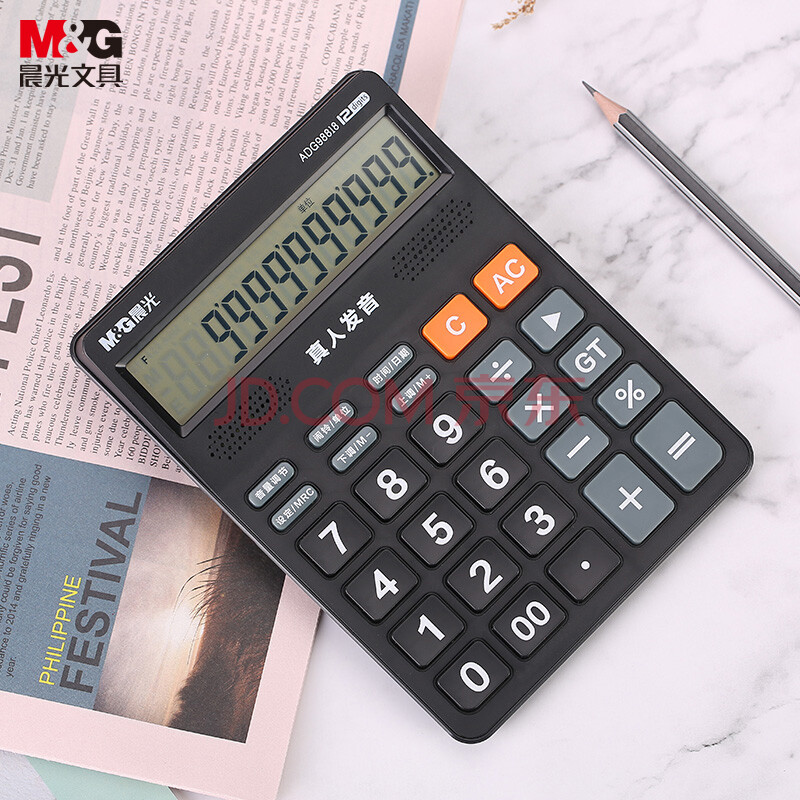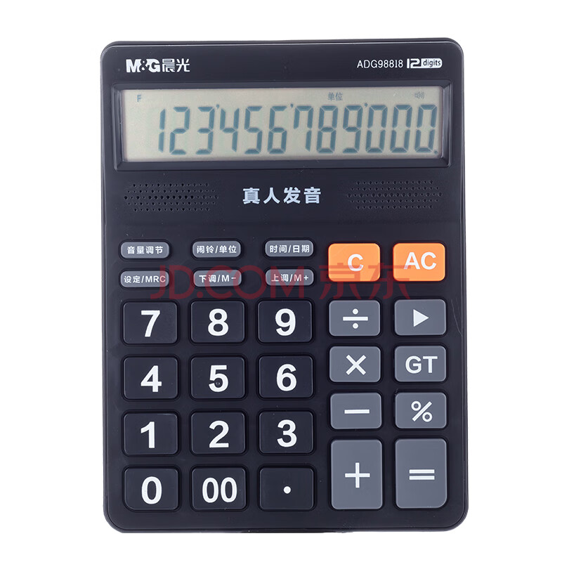 商品相册:晨光(M&G)文具语音型计算器 818冲锋号桌面计算机 学生/办公通用12位大屏幕计算器 黑色单个装ADG98818第