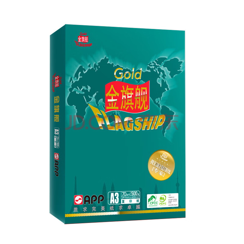 商品相册:APP 金光APP 金旗舰(GOLD FLAGSHIP)70g A3双面打印高档复印纸A3纸整箱 500张/包 4包/箱(2000张)第
