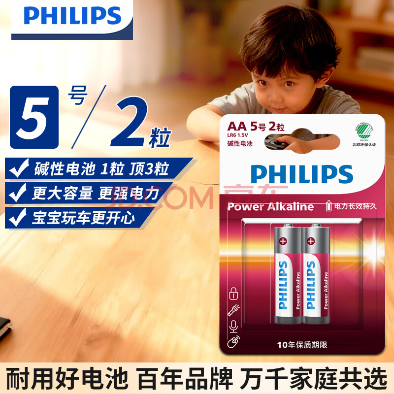 商品相册:飞利浦(PHILIPS)碱性5号电池2粒干电池 十年聚能锁电适用智能门锁/玩具鼠标/电子锁血压计/血糖仪电池5号商超同款第