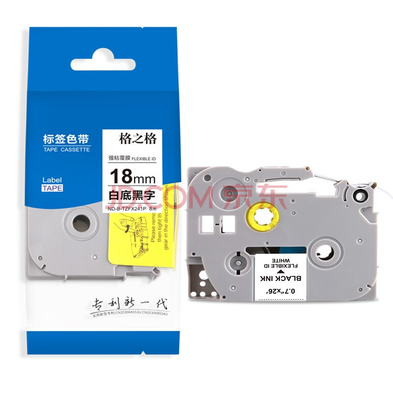 商品相册:格之格标签带适用兄弟标签机TZe-241白底黑字18mm标签打印机色带不干胶标签纸适用PT-D210 450 E550W 第