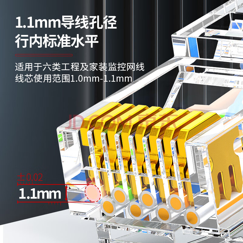 商品相册:安普康(AMPCOM)水晶头六类 30U镀金CAT6类千兆网线接头50个 工程级RJ45电脑网络监控8P8C网口连接器AMCAT630050第