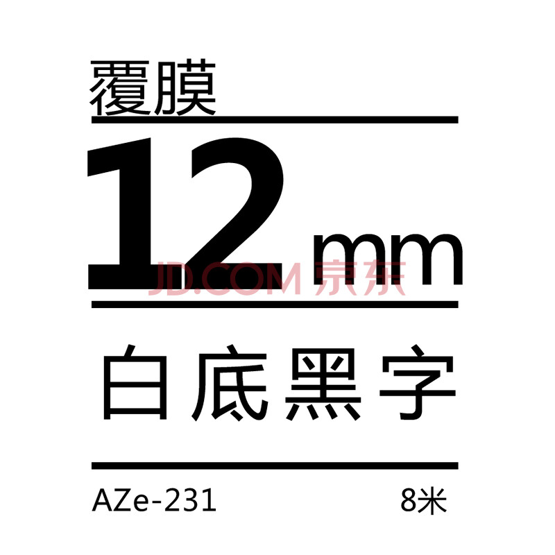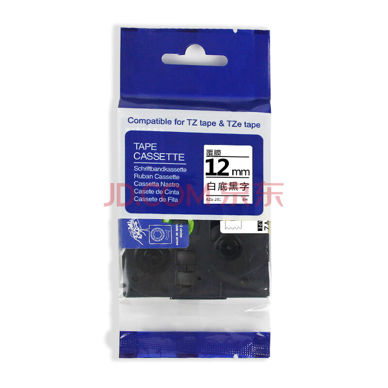 商品相册:得印标签机色带不干胶标签纸色带12mm AZe-231白底黑字TZc TZe 适用兄弟PT-E115B PT-D210 PT-P300BT第