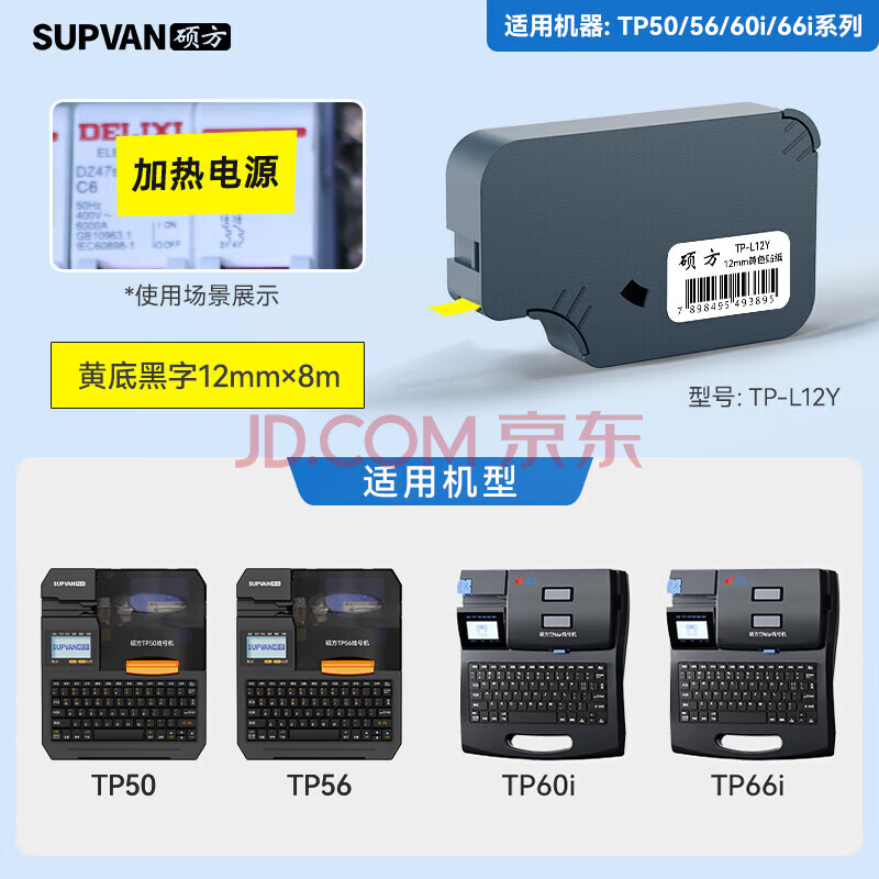 商品相册:硕方线号机贴纸 12mm黄色不干胶贴纸带TP60i TP66i打号机打码机打字机色带贴纸TP-L12Y第