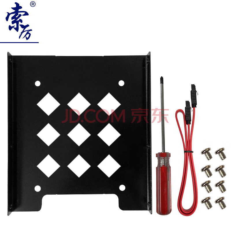 商品相册:索厉 固态硬盘支架2.5转3.5 SSD装机配件套装 配硬盘托架/SATA线/螺丝刀/螺丝/SL-T02(10个装)第