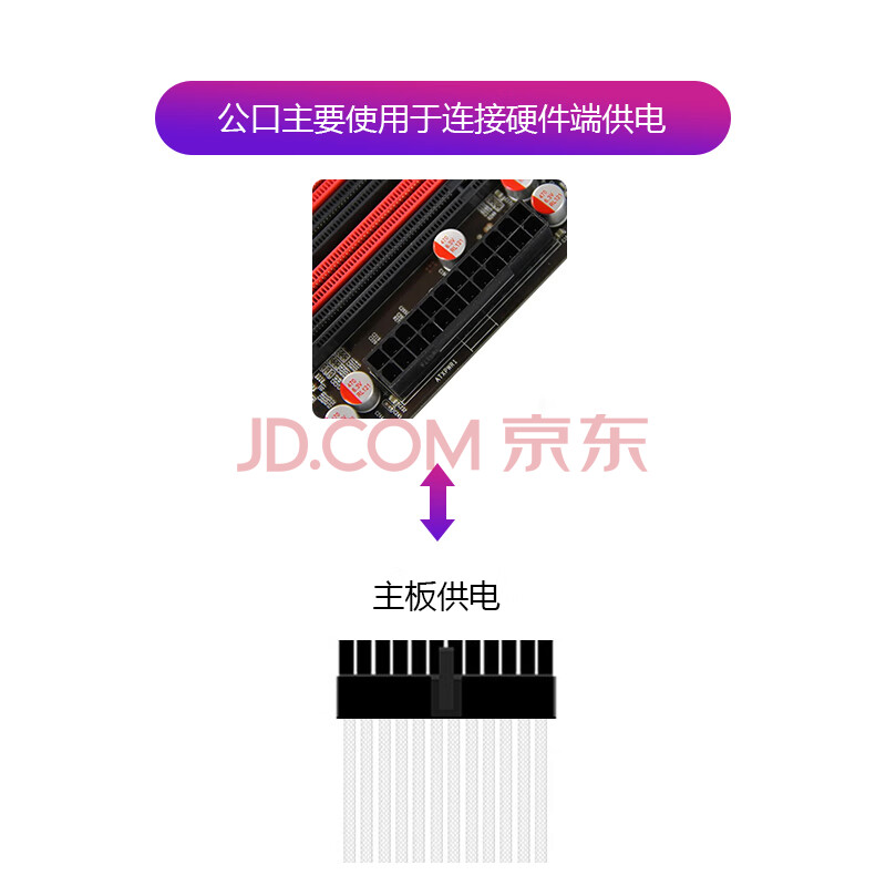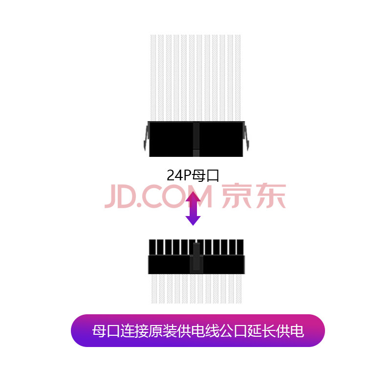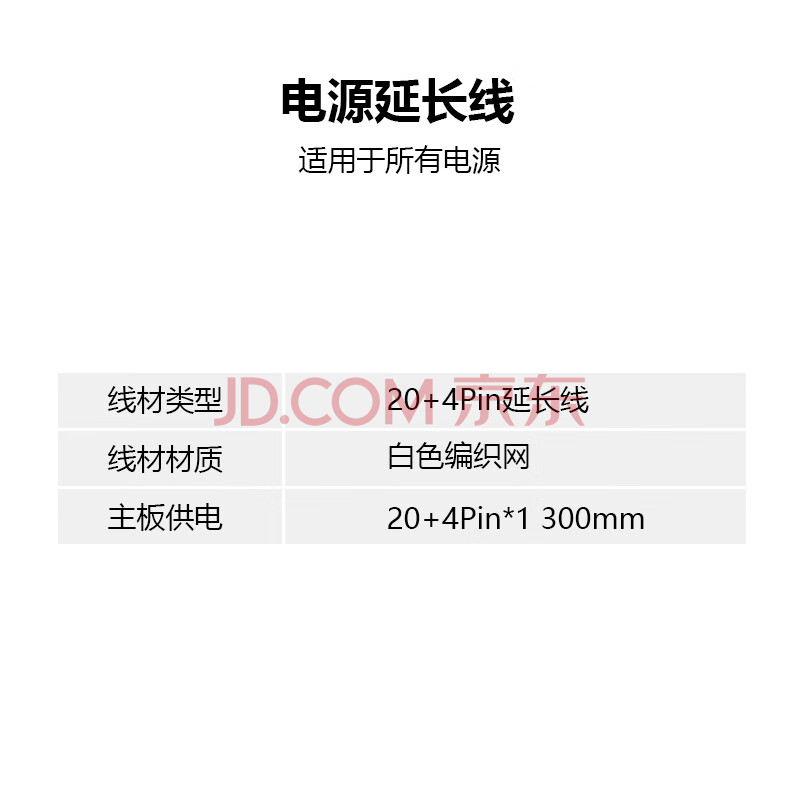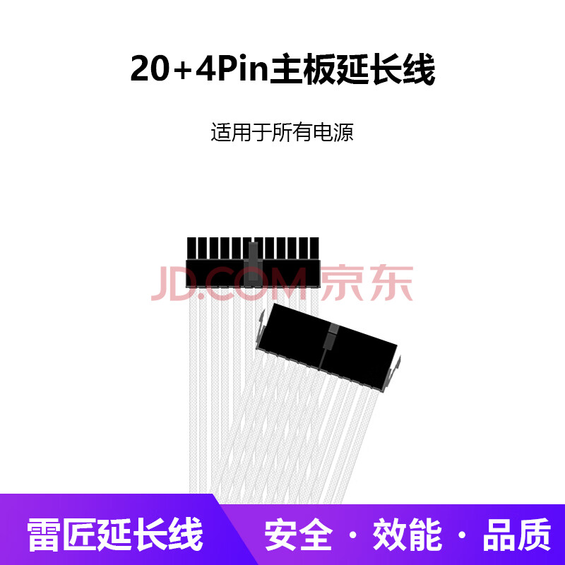 商品相册:雷匠(RAYARTI)电源延长线 定制线 主板24Pin*1 白色编织网 300mm第