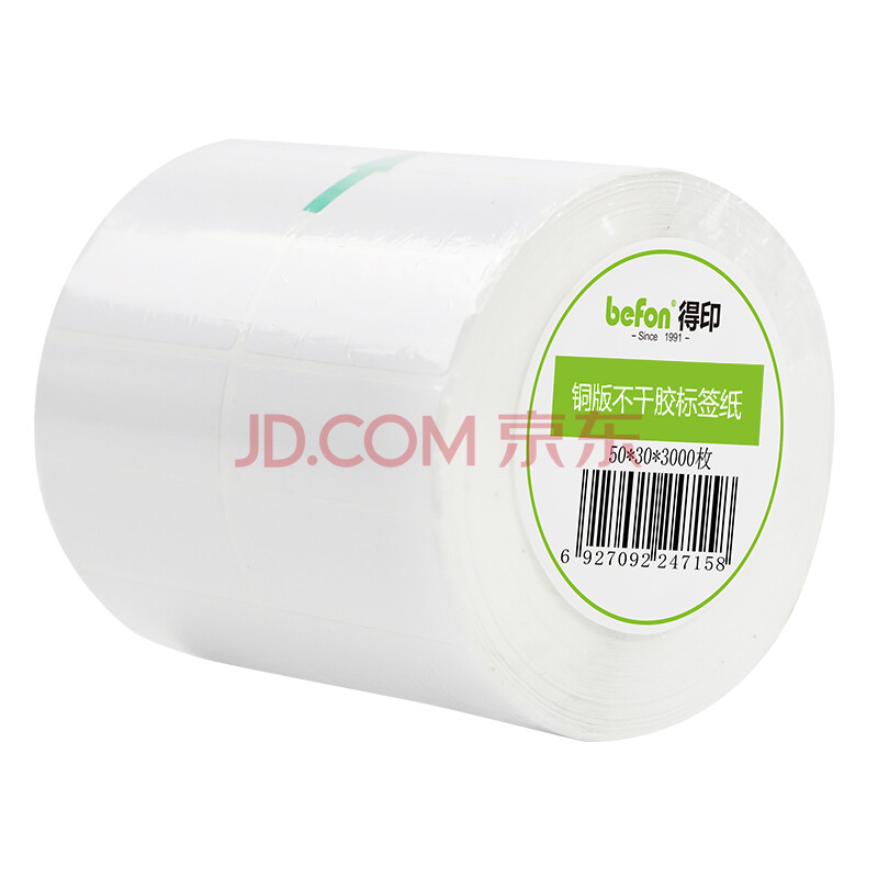 商品相册:得印(befon)不干胶标签纸 铜版纸 50mm*30mm*3000枚 双排 条码纸 打印贴纸第