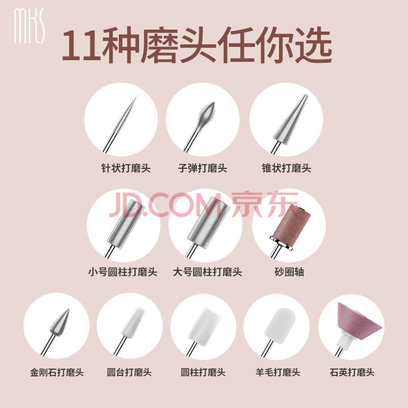 商品相册:mks美克斯电动磨甲器修甲卸甲美甲器修指甲刀磨甲打磨笔抛光去死皮灰厚甲多功能磨头组合装NV8625第