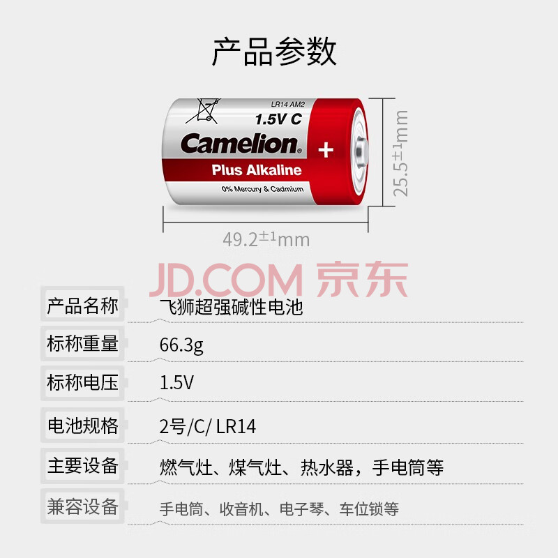 商品相册:飞狮(Camelion)碱性电池 干电池 LR14/C/中号/2号 电池 12节 燃气灶/热水器/收音机/手电筒/电子琴第