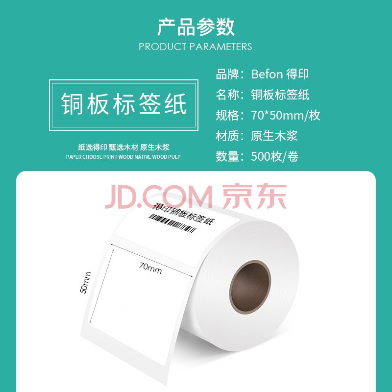 商品相册:得印(befon)不干胶标签纸 铜版纸70mm*50mm 500枚 单排 条码纸 打印贴纸第