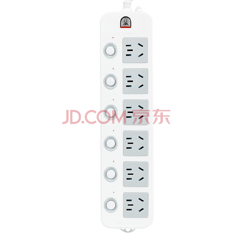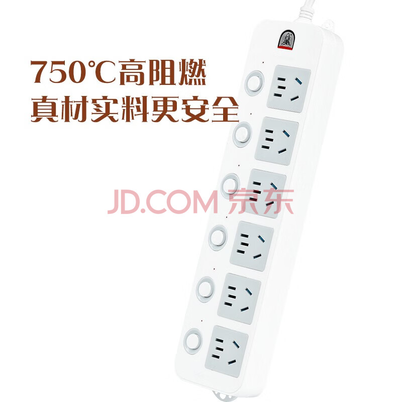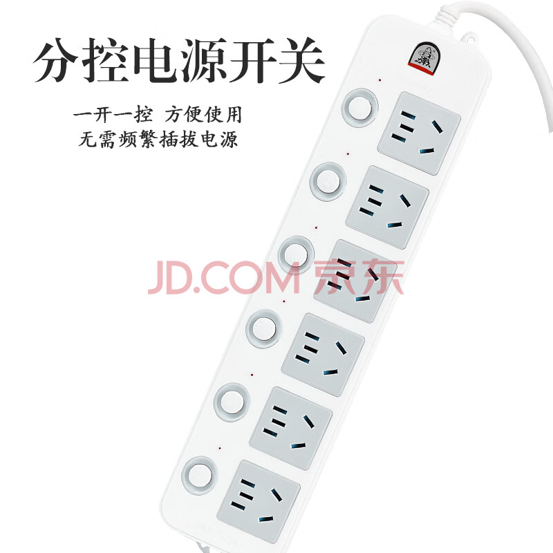 商品相册:子弹头新国标分控插座/插排/插线板/排插/插板/接线板/拖线板 6位分控独立开关全长2.8米TS-208c第